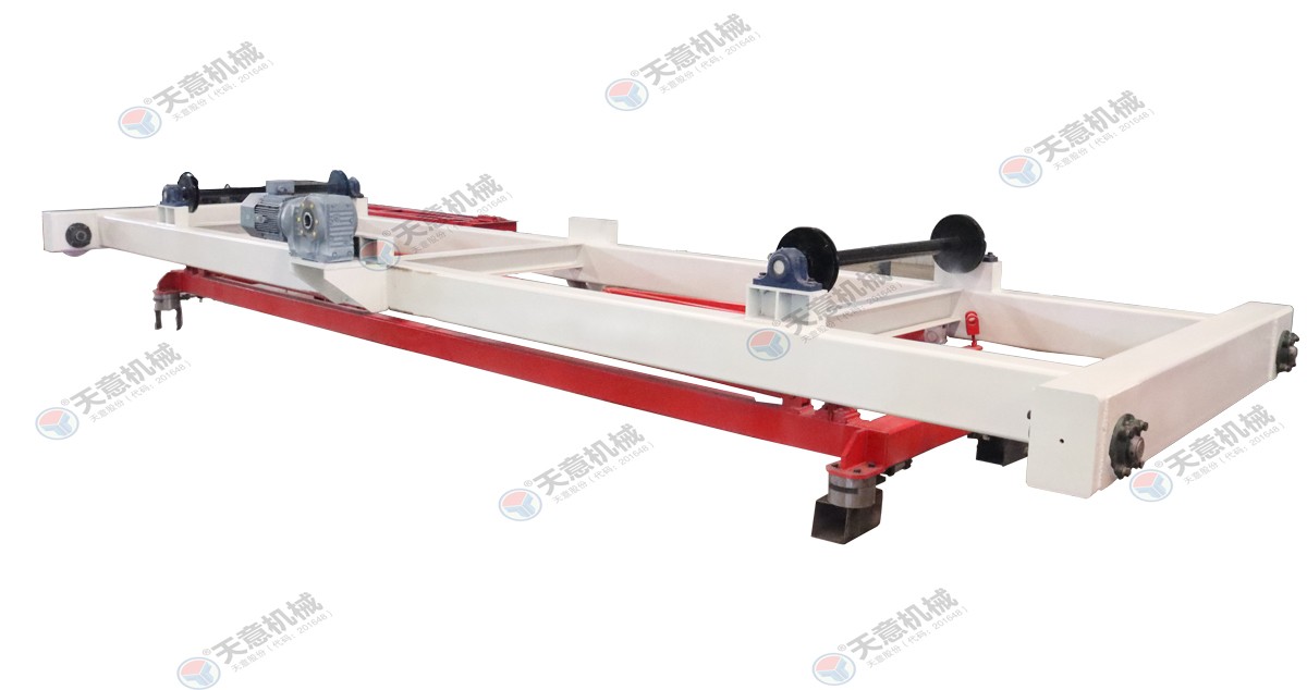 翻轉(zhuǎn)吊機(jī):抓取模箱翻轉(zhuǎn)90°,側(cè)立在切割小車上進(jìn)行切割;切割工段空翻脫模機(jī)將??蚍D(zhuǎn)90°,放在切割小車支座上進(jìn)行脫模,脫模后的??蚺c清理后的側(cè)模板進(jìn)行合模,合膜后的空??虮坏踹\(yùn)至模具回程軌道上進(jìn)行涂油處...