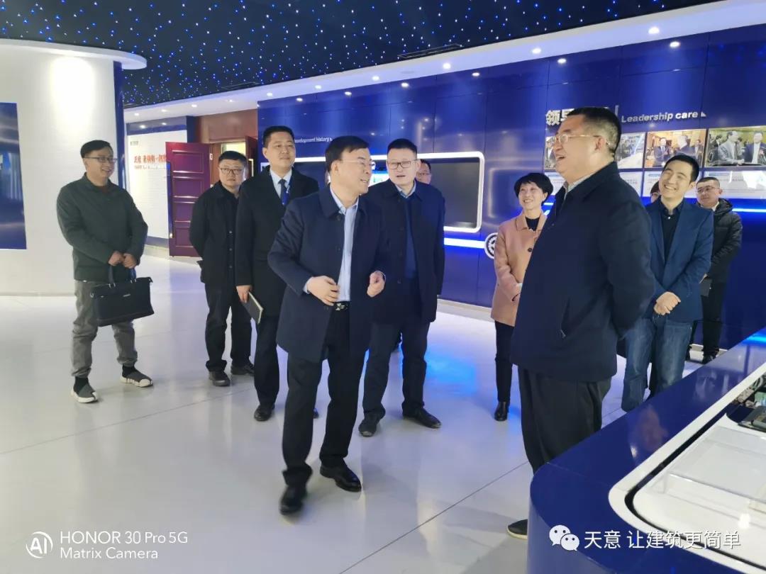 2021年2月23日, 市住建局黨組成員、副局長(zhǎng)趙羽,市住建局節(jié)能與科技科科長(zhǎng)孫新魯?shù)阮I(lǐng)導(dǎo)一行,在區(qū)住建局局長(zhǎng)鄒紅, 區(qū)住建局行業(yè)發(fā)展科科長(zhǎng)馬特等領(lǐng)導(dǎo)的陪同下,蒞臨天意座談并考察指導(dǎo)工作。天意機(jī)械董事長(zhǎng)劉洪彬,總經(jīng)理劉海龍,國(guó)內(nèi)銷售部經(jīng)理秦艷慧等領(lǐng)導(dǎo)參加了座談?wù){(diào)研,并陪同參觀了天意省級(jí)研發(fā)中心、科技體驗(yàn)館、BIM技術(shù)在裝配式建筑中的創(chuàng)新應(yīng)用情況等。